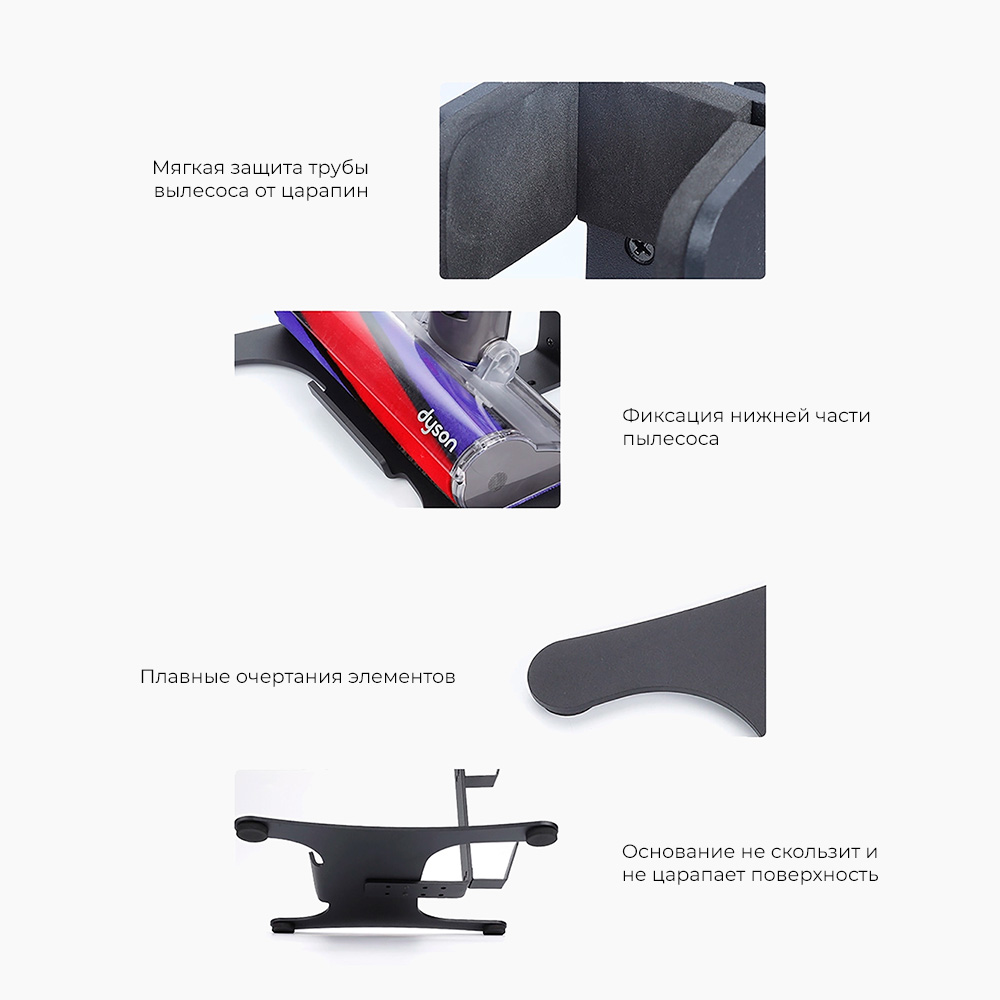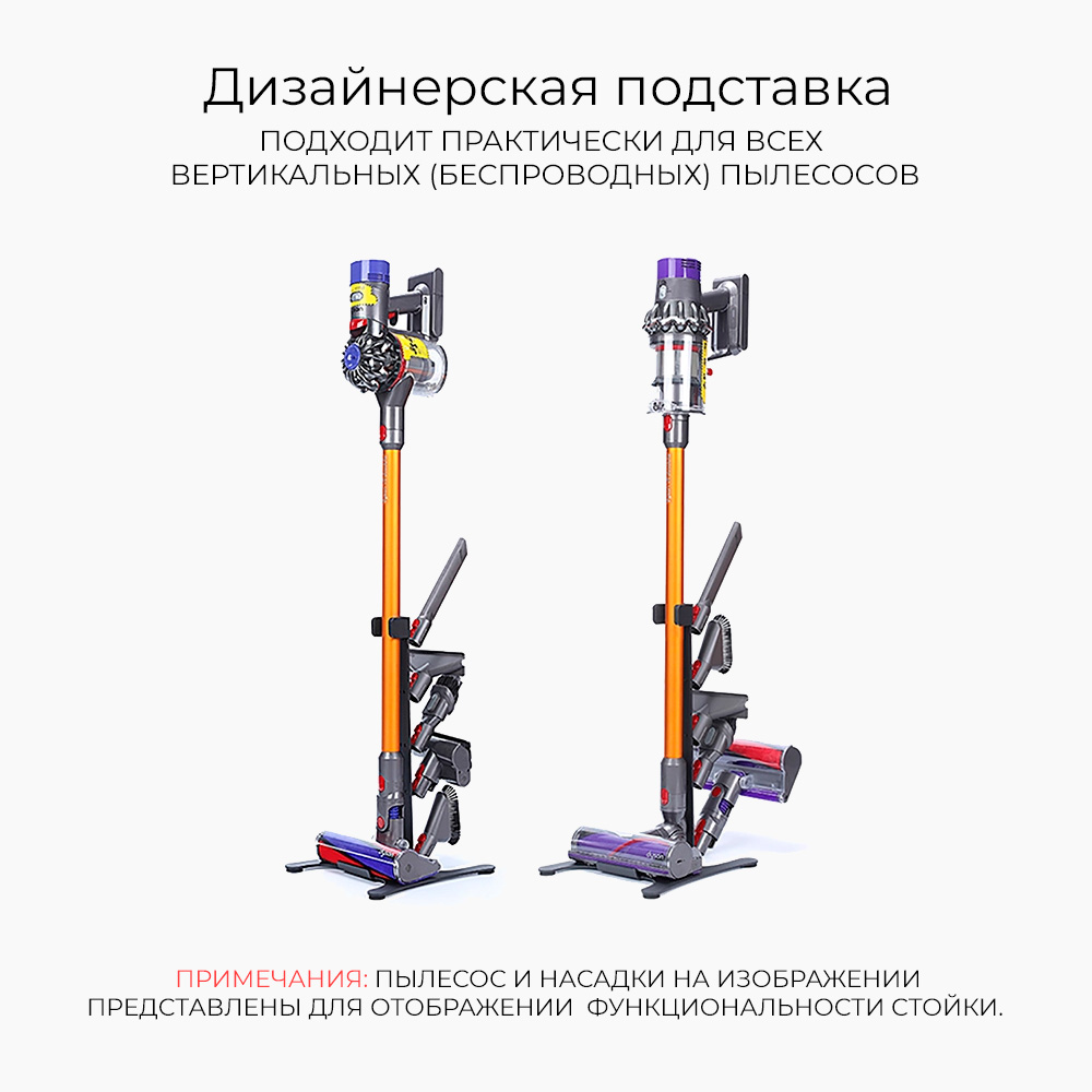 Подставка для вертикальных (беспроводных) пылесосов черного цвета подойдет под любой интерьер. Вы можете ее разместить в любом удобном для месте.